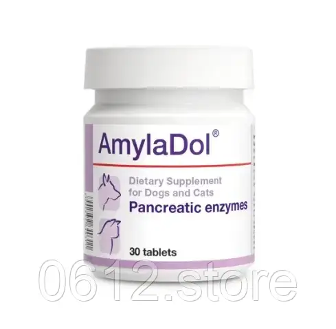 Аміладол – це кормова добавка для собак та котів, що містить натуральні ферменти травлення, які забезпечують перетравлювання жирів, вуглеводів і протеїнів. Рекомендується для тварин хворих та схильних до захворювання на панкреатит. Показаний при різних типах порушень травлення, запаленні підшлункової залози та як монотерапія при синдромі мальдигестії (нудоти, відрижка, дискомфорт в абдомінальній ділянці, метеоризми , діарея тощо).